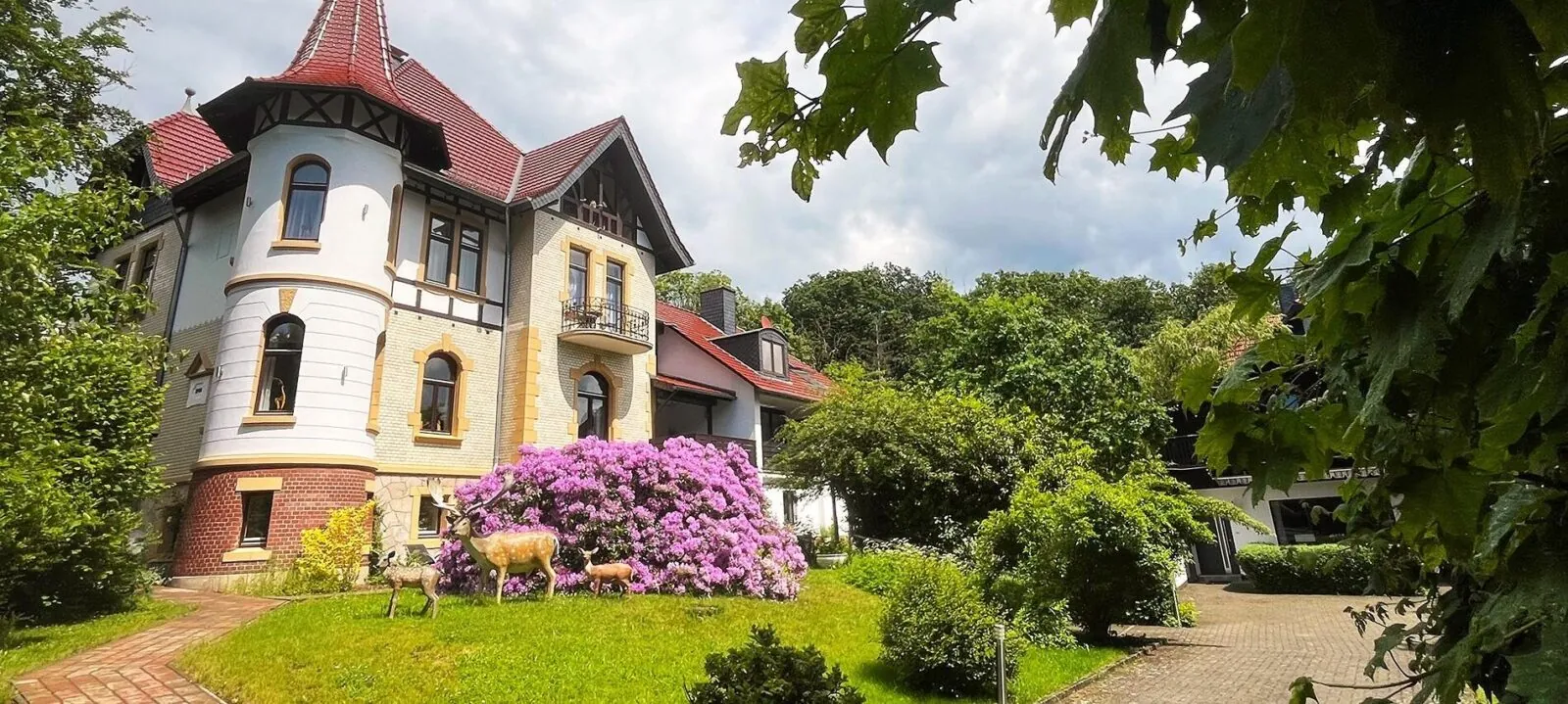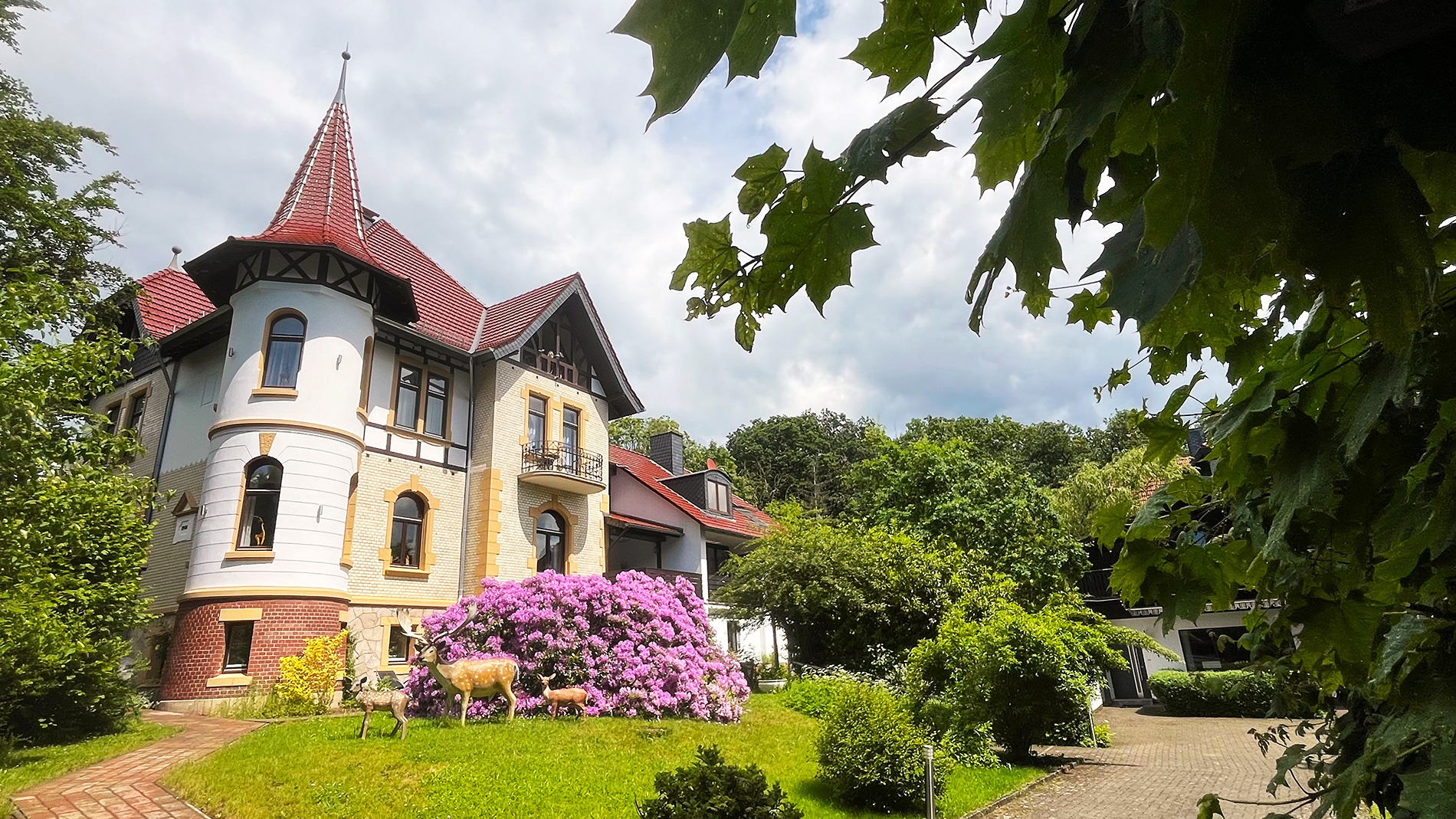 Berufsbedingt interessieren wir uns natürlich auch für Immobilien, und so hat es der Zufall gewollt, dass wir 2018 dieses „kleine Schlösschen“ kennengelernt haben. Es war Liebe auf den ersten Blick. Aus unternehmerischer Sicht hätten wir es nicht anfassen sollen, denn es war alles alt (70er Jahre Harzcharme) und vieles war auch kaputt. Schnell war klar: Nur durch eine Kernsanierung ist es möglich, wieder etwas Schönes, Besonderes daraus zu machen. Wir haben den Anspruch, dass die Wohnungen so gemütlich und stilvoll sind, dass die Gäste davon schwärmen, es weitererzählen und wiederkommen. Jedes Schlafzimmer soll ein großes, bequemes Boxspringbett und vor allem den Luxus eines eigenen Badezimmers haben. Das ist auch immer noch unser Alleinstellungsmerkmal, auf das wir sehr stolz sind.